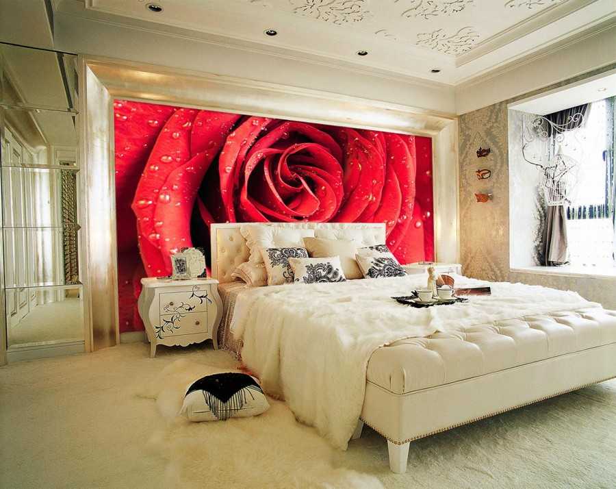 Сегодня многие дорогие материалы успешно имитируют в интерьере спальни красивые обои: