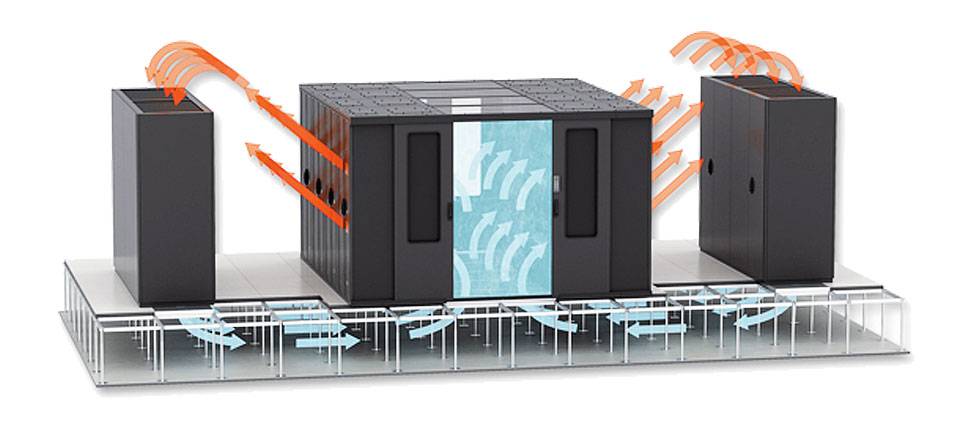 При охлаждении отдельных стоек каждый шкаф фактически имеет собственный кондиционер. При этом внутри шкафа есть изолированные пространства для движения нагретого и охлажденного воздуха.