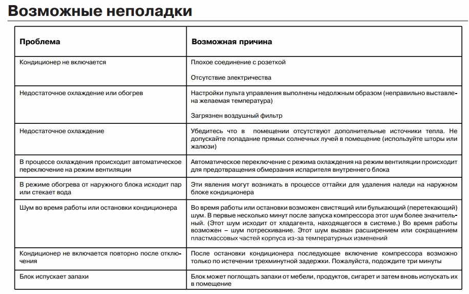 В процессе работы сплит-системы возможно возникновение неполадок. Их следует разделить на две категории – сбои в работе и глобальная поломка. В последнем случае необходимо вызвать специалиста для решения проблемы. В инструкции производитель описал некоторые типы неисправностей и методы их решения, но коды ошибок в инструкции к R2 Хек не указаны, т.к. отсутствует система самодиагностики.