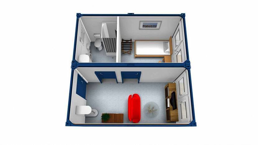 Их используют, как спальни, кухни, бани или полноценные жилища с несколькими комнатами. Поставить перегородку в блок-контейнере – это минутное дело.