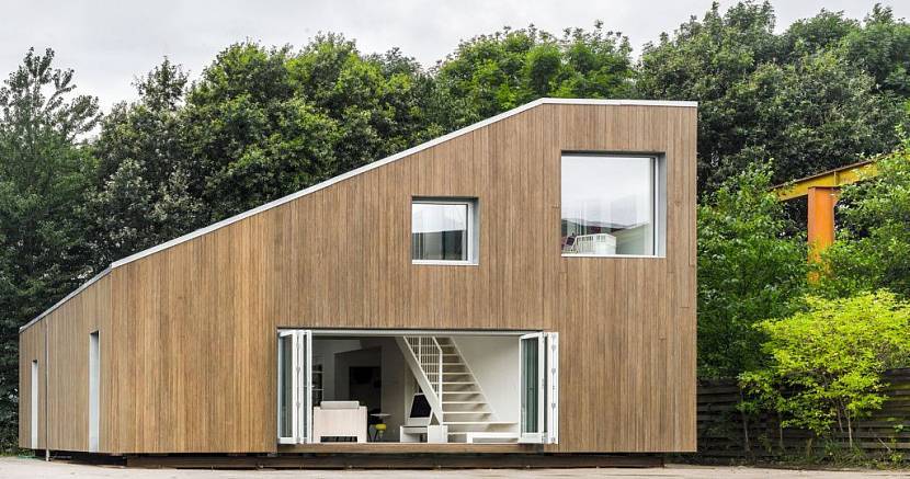 Современные архитекторы проектируют достаточно необычные модульные дома из двух блок контейнеров. 2 контейнера можно совместить оригинальным способом. Например, их можно поставить один на другой. Но в этом случае нужно использовать большие модули. Другой вариант – совмещение модулей с небольшим смещением по вертикали.