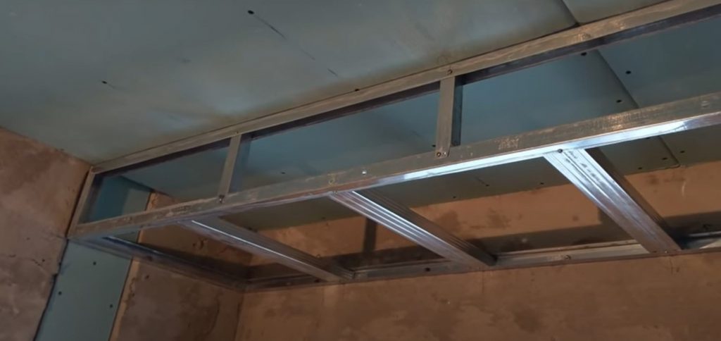 Металлическая обрешетка является оптимальной для создания короба на потолке.