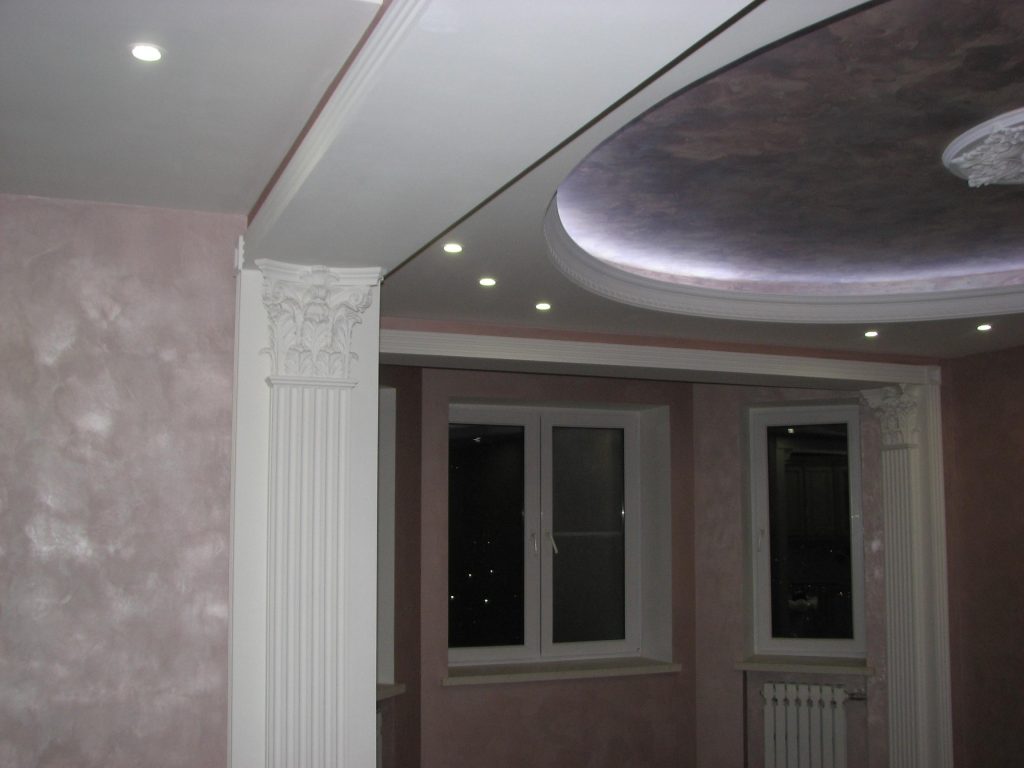 - материал позволяет создавать на потолке конструкции любой конфигурации, что может стать ярким декоративным элементом в помещении;