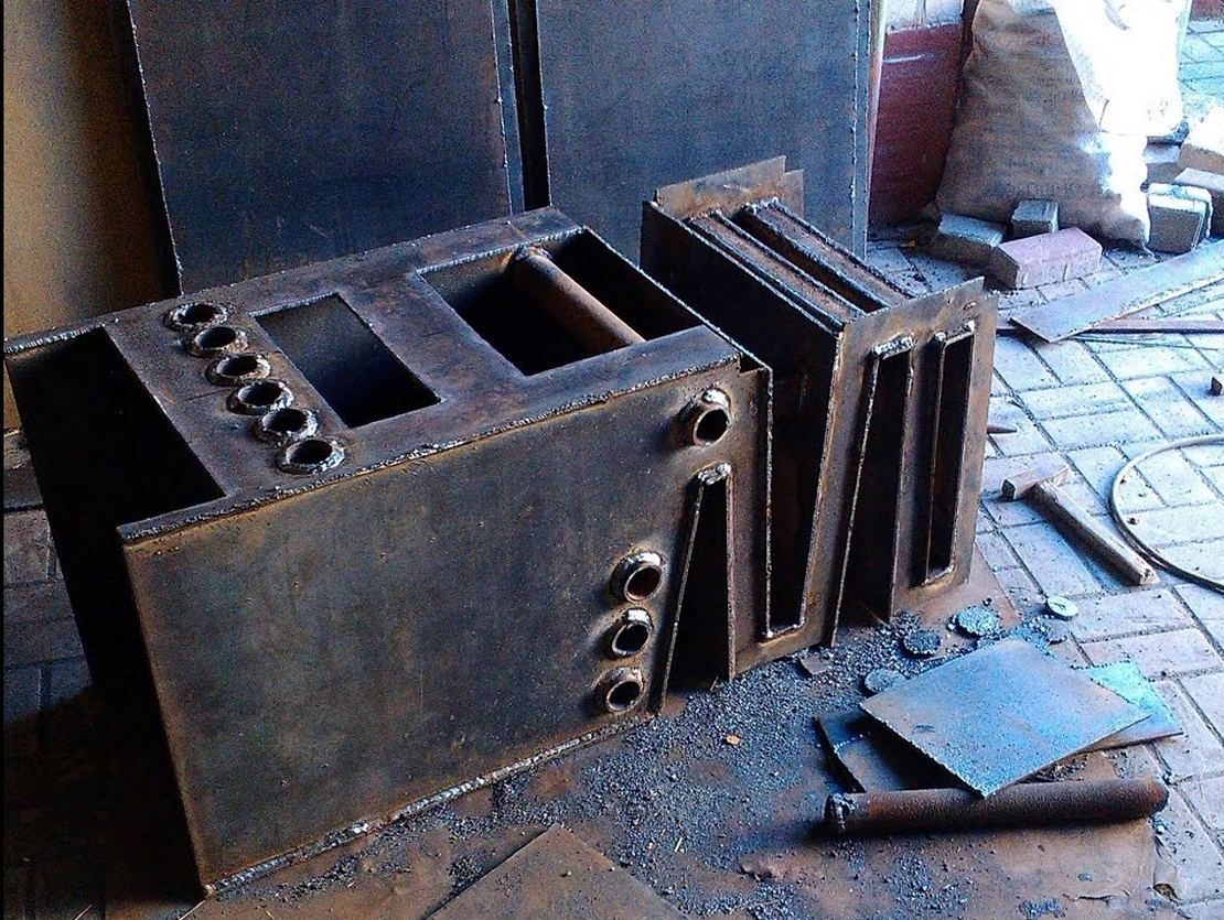 Как правило, для самостоятельного изготовления конструкции вам потребуется стальной лист толщиной 4-6 мм, чугунный лист 1 см, труба из стали с толщиной стен 4 мм, электроды для сварки и сварочный аппарат. Также запаситесь центробежным вентилятором, колосниковой решеткой, совпадающей с размером камеры горения, автоматическое устройство для регулирования температурного режима, асбестовый лист и уплотнительный шнур.