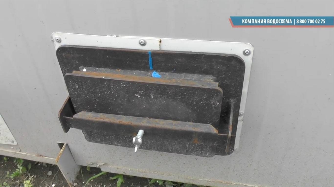 Один из них для зольного отделения. И можно будет, не заходя в саму котельную, снаружи открыть его и выбрать золу, которая остается от сгорания. И здесь же есть доступ к барабану. Закрывается люк достаточно просто и фиксируется при помощи рычага.