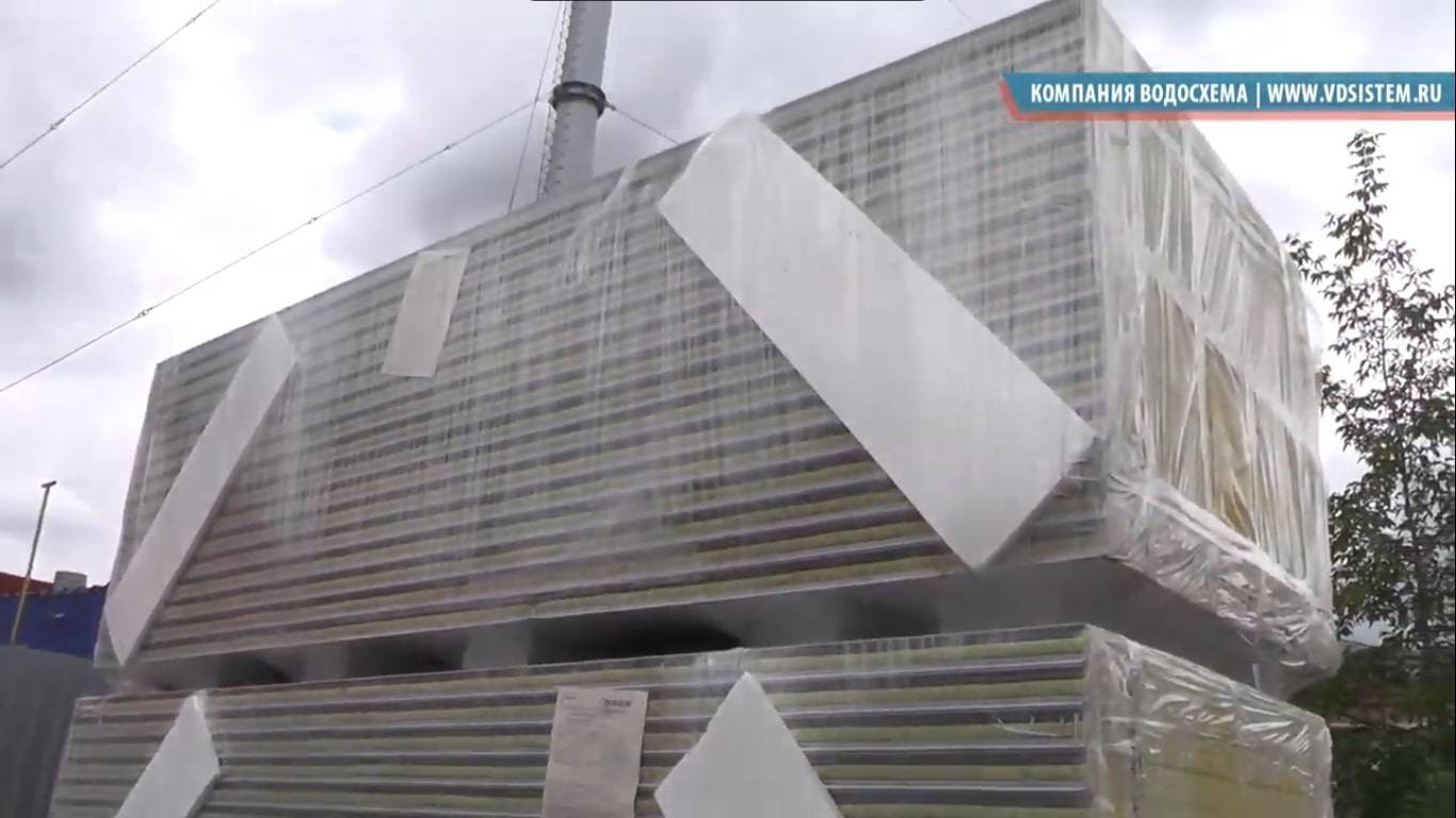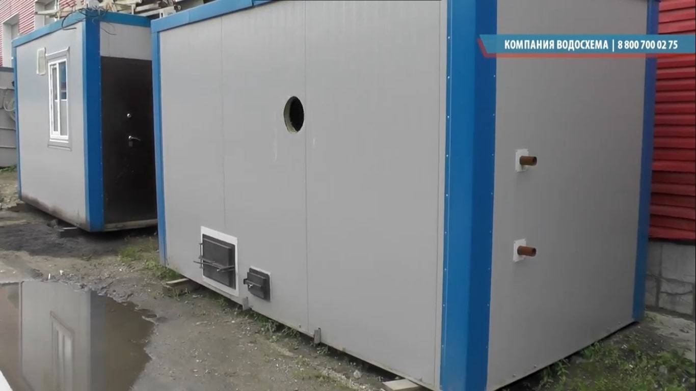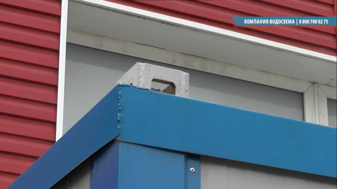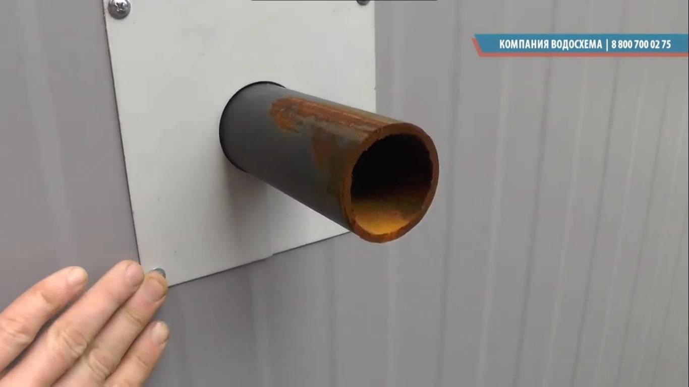 В стенах котельной подготовлены технологические отверстия. Одно из них для дымохода, который прикручивается к специальной стойке снаружи, затем устанавливается дымосос. Это все входит в комплектацию. И перед отгрузкой на доставку также устанавливаются выводы с люками.