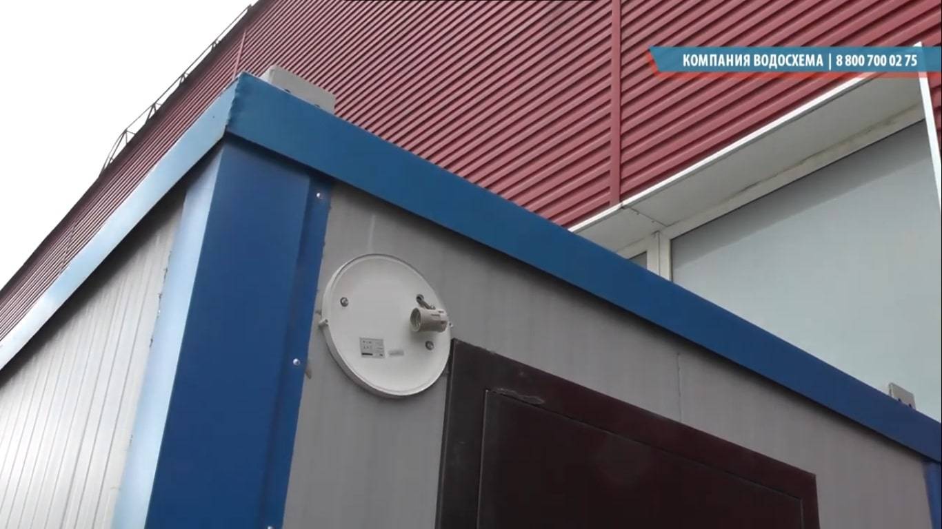 Над входом в модуль установлена лампа. Плафон снят и находится внутри. Он устанавливается уже после доставки котельной, чтобы не повредить его при перевозке.