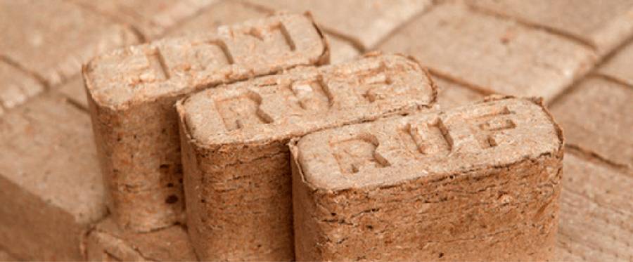 По своему составу этот вид топлива схож с пеллетами, но выглядит несколько иначе: брикеты крупнее и могут быть не только цилиндрической, но и любой другой правильной формы. Исходным сырьём служит всё та же щепа, опилки, стружка. Также широко применяются органические остатки растительных культур, выращиваемых в сельском хозяйстве.