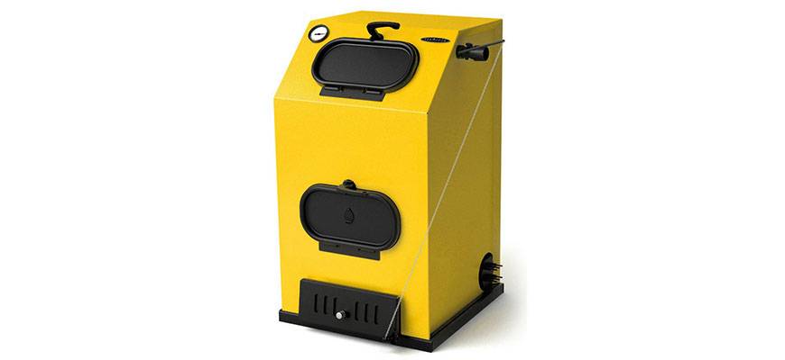 Тип теплообменника – изготавливаются стальные и чугунные напольные твердотопливные котлы длительного горения на угле. Большой вес конструкции при полной загрузке топлива, составляет приблизительно 2-3 центнера. Поэтому, все производители изготавливают котлы в напольном исполнении.
