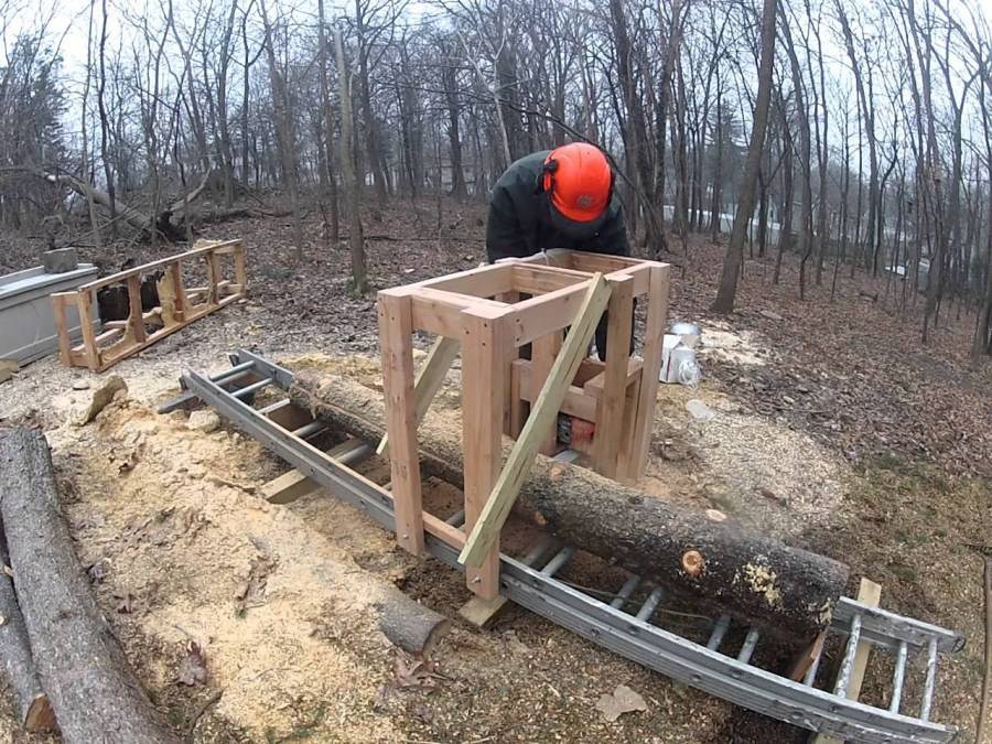 Наибольшее распространение для распиловки одиночных толстых бревен цепными пилами, получили различные конструкции козел с фиксацией задней части бревна.