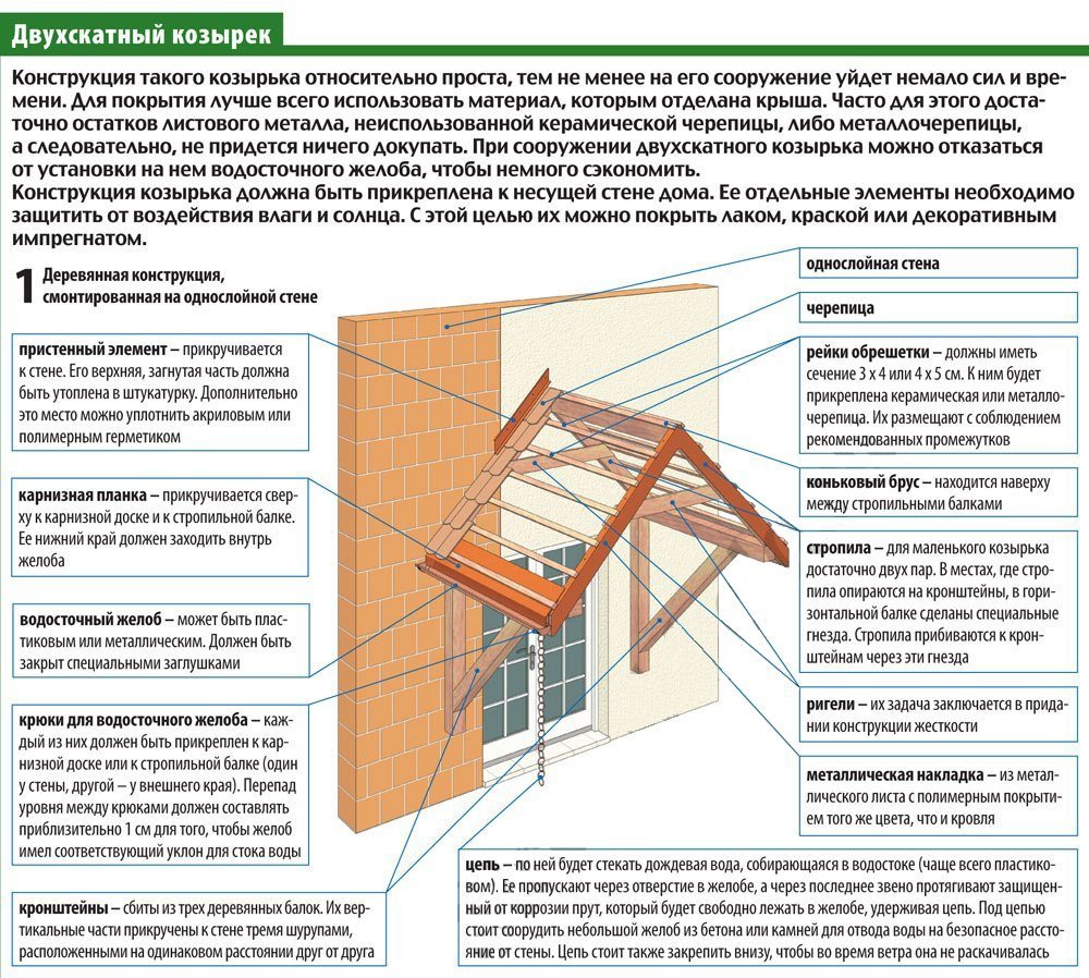 Двускатный козырек – правила установки