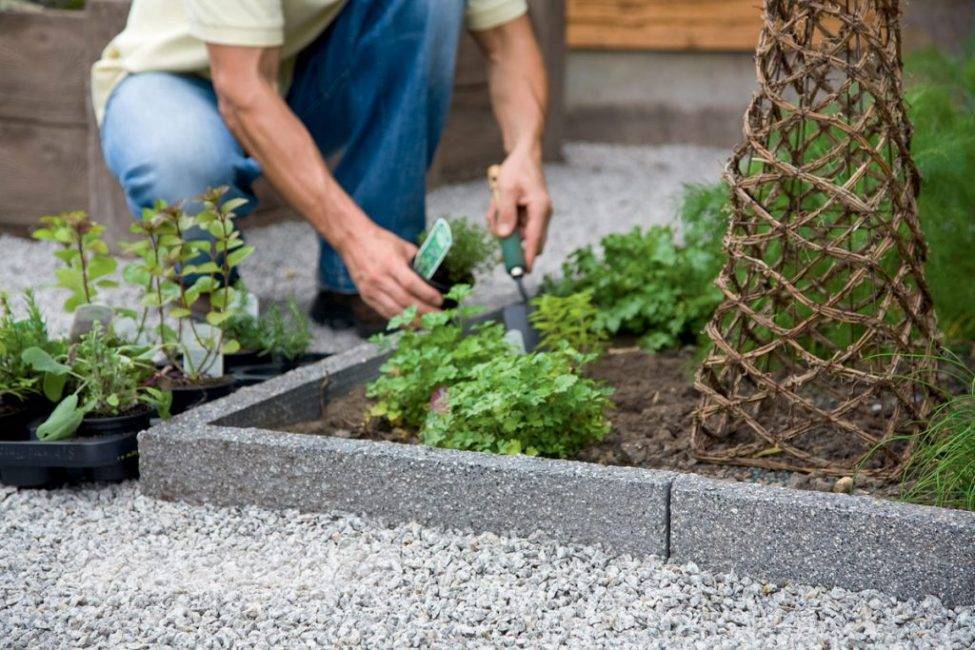 - Внутрь готовых ограждений насыпают плодородный грунт, после чего приступают к высадке растений.