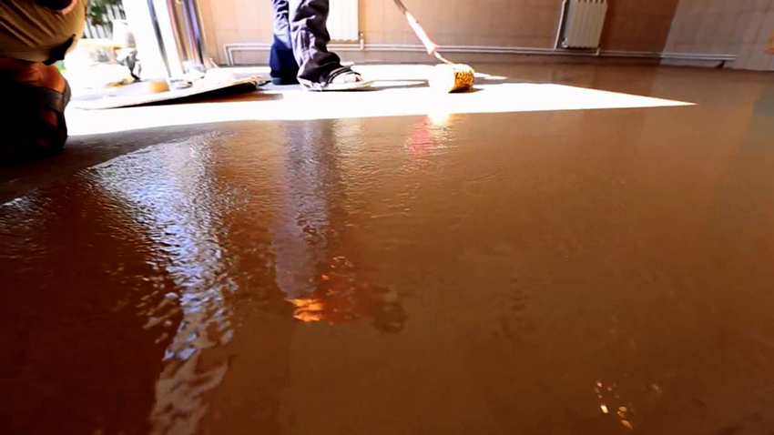 - Полученную смесь наносят на поверхность пола и оставляют на просушку.