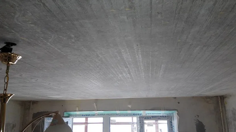 - Перед покрытием матовым составом потолочные перекрытия дважды грунтуют, используют 2–3 слоя шпатлёвки и зачищают. При использовании глянцевого продукта необходима дополнительная шлифовка мелкой затирочной сеткой