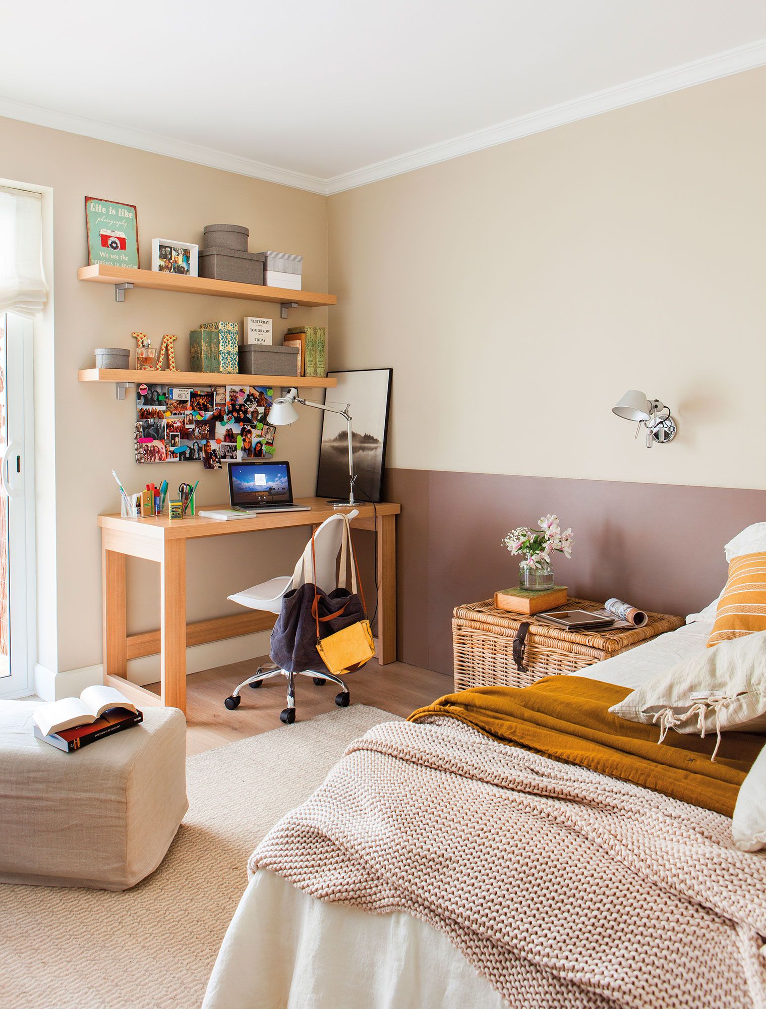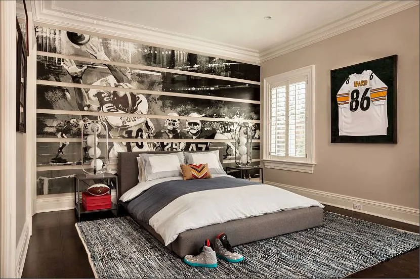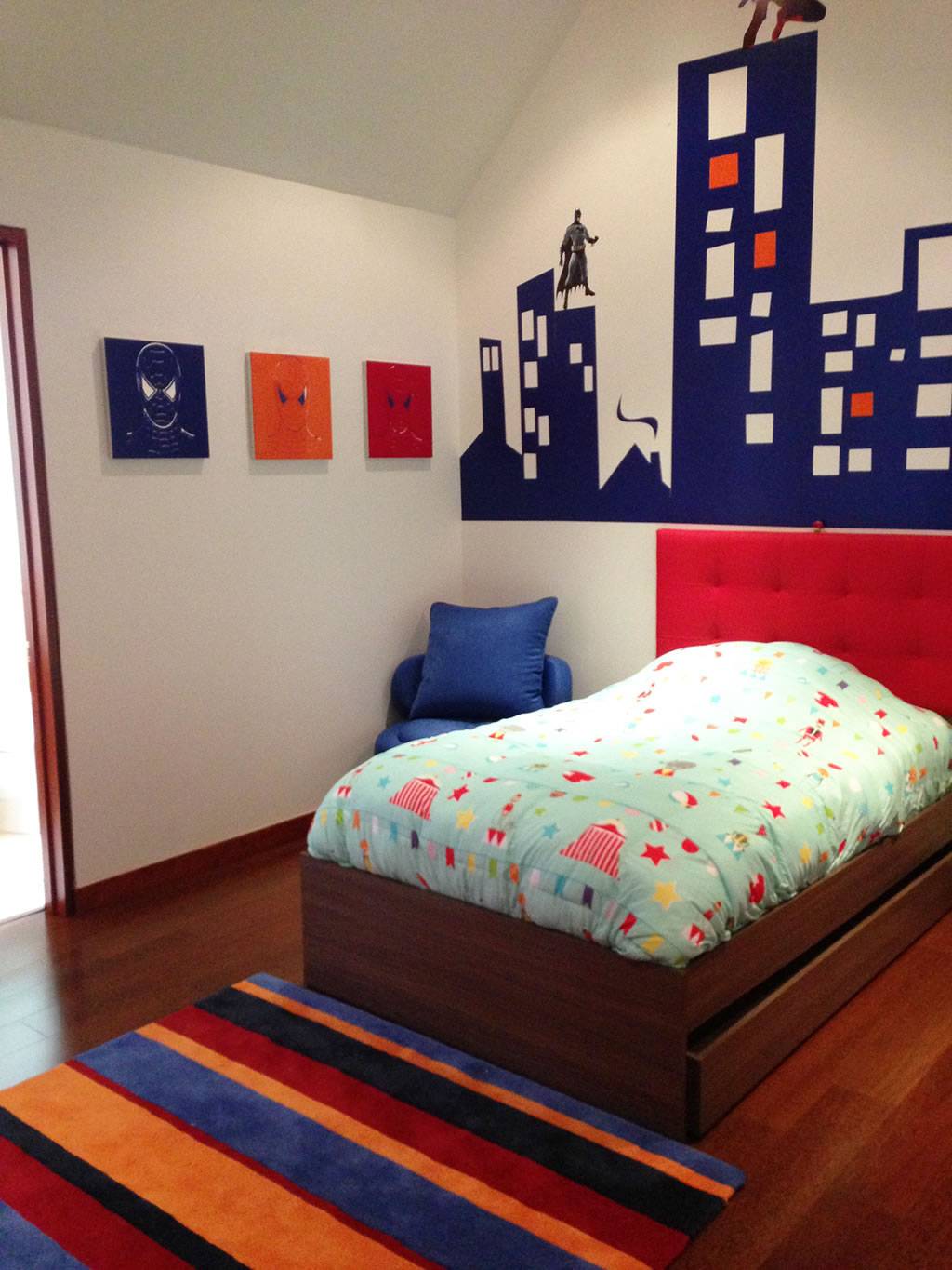 А вот от кислотных, кричащих цветов все-таки стоит попробовать отговорить, или настоять на альтернативе: например, предложить выкрасить в спорный цвет небольшой фрагмент комнаты (участок стены в спортивной зоне, внутреннюю часть стеллажа), повесить яркие постеры, подобрать в этом цвете один-два предмета мебели.
