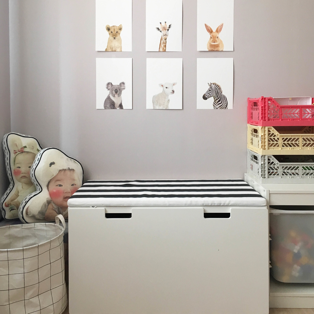 Игрушки можно складывать в пластиковые контейнеры, которые затем можно поместить под лавку. Каждый контейнер может быть окрашен в разный цвет и предназначен для одного вида игрушек, например для конструкторов, мелких игрушек.