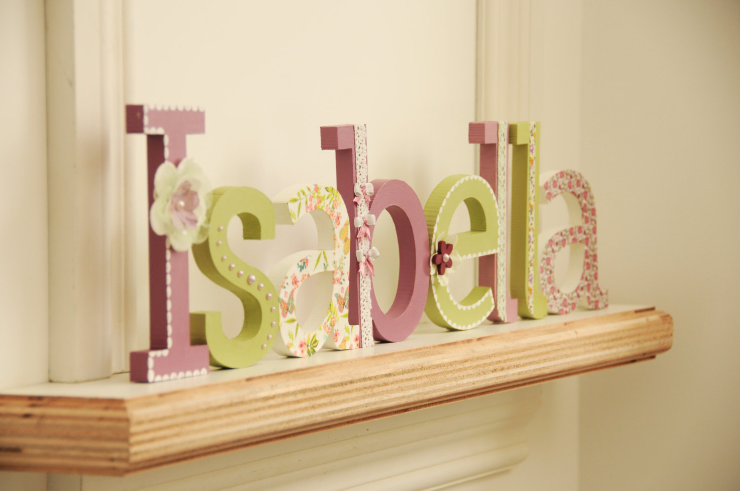 Интересным элементом декора детской могут стать объемные буквы. Обычно, родители останавливаются на имени ребенка или какой-то фразе со смыслом. Нужно понимать, что такие буквы станут полноценным предметом интерьера, и для них нужно обязательно выделить целую однотонную стену. Если комната маленькая и вся загромождена мебелью, не стоит небольшое место на стене занимать буквами.