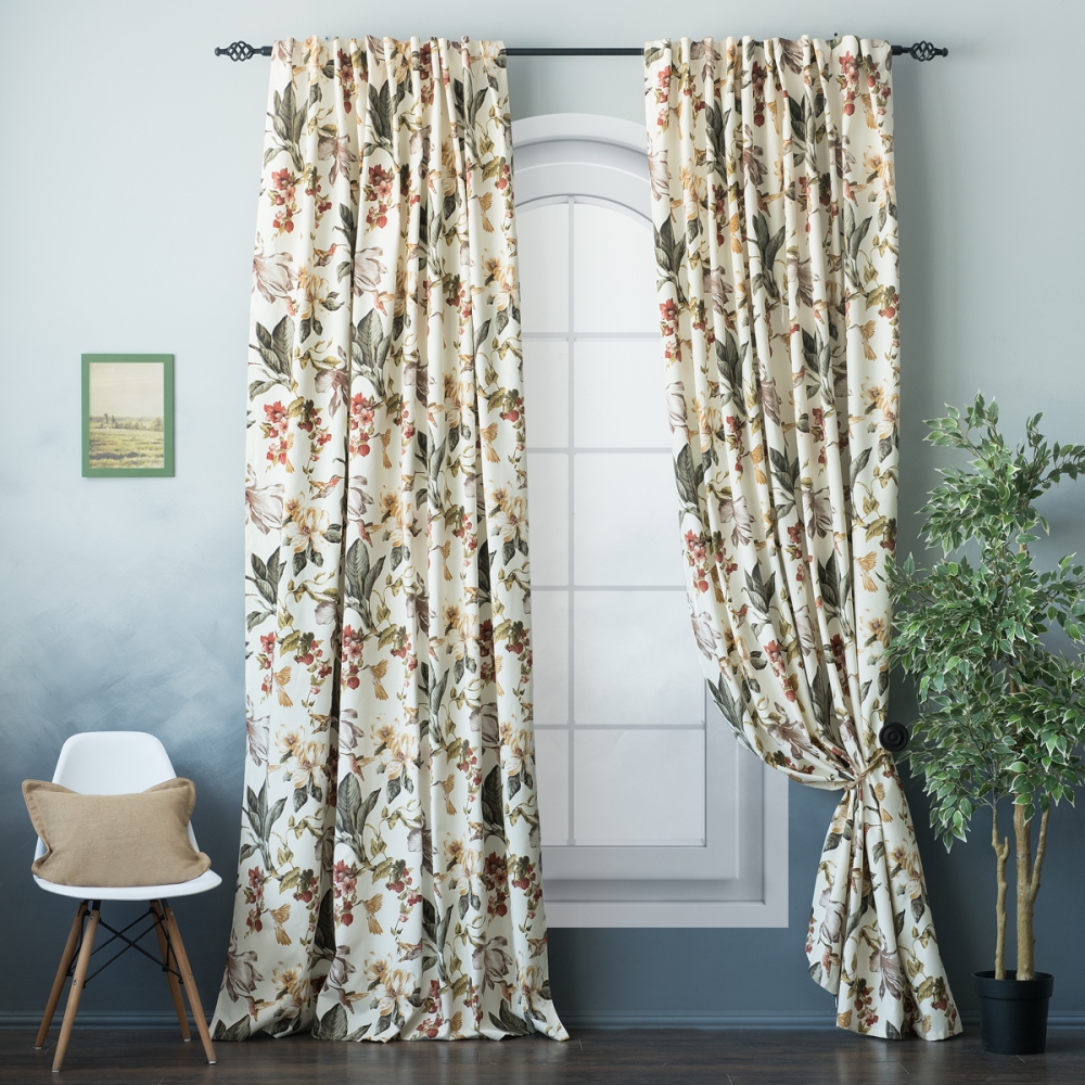 Как правило, ширина шторы немного превышает ширину крепления, из-за чего на портьере создаются мягкие вертикальные складки, придающие оформлению невесомость и легкость.