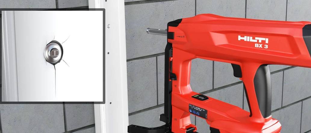 Данная же шпилька при наличии аккумуляторного пистолета Hilti BX3 загоняется в бетон или металл простым одиночным выстрелом. А уже дальнейшее решение, что закрепить на этой резьбе, зависит от ваших фантазий и потребностей.