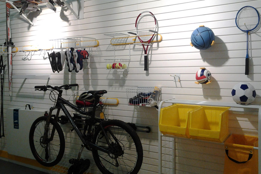 Вокруг главного героя – велосипеда – можно организовать целый уголок для хранения спортивного инвентаря…