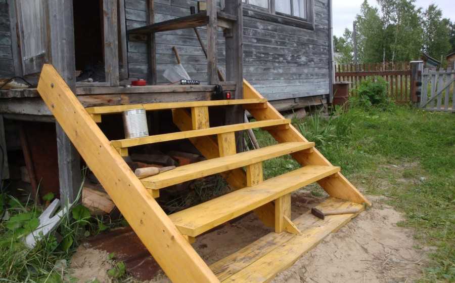 Ширина ступеньки должна обеспечивать удобство жильцам. А их количество предпочтительно нечетное – так вы получите дополнительное ребро жесткости. Ну и не забывайте о перилах. Их присутствие желательно, если количество ступеней больше трех.