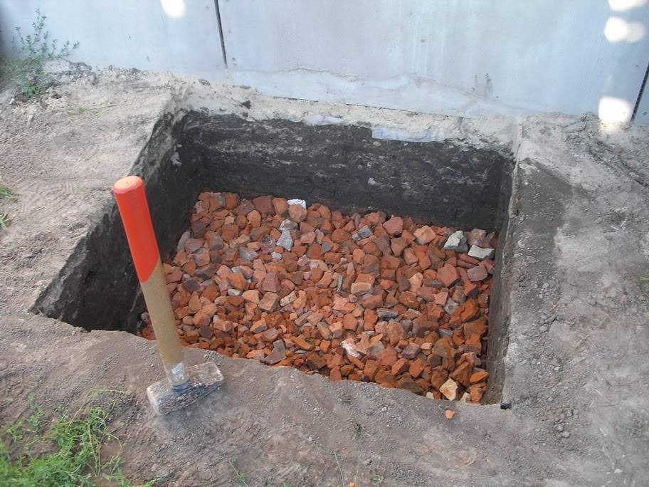 - После заливки водой поверхность тщательно трамбуется. Допускается применять дополнительную гидроизоляцию. В качестве материала рекомендуется использовать рубероид.