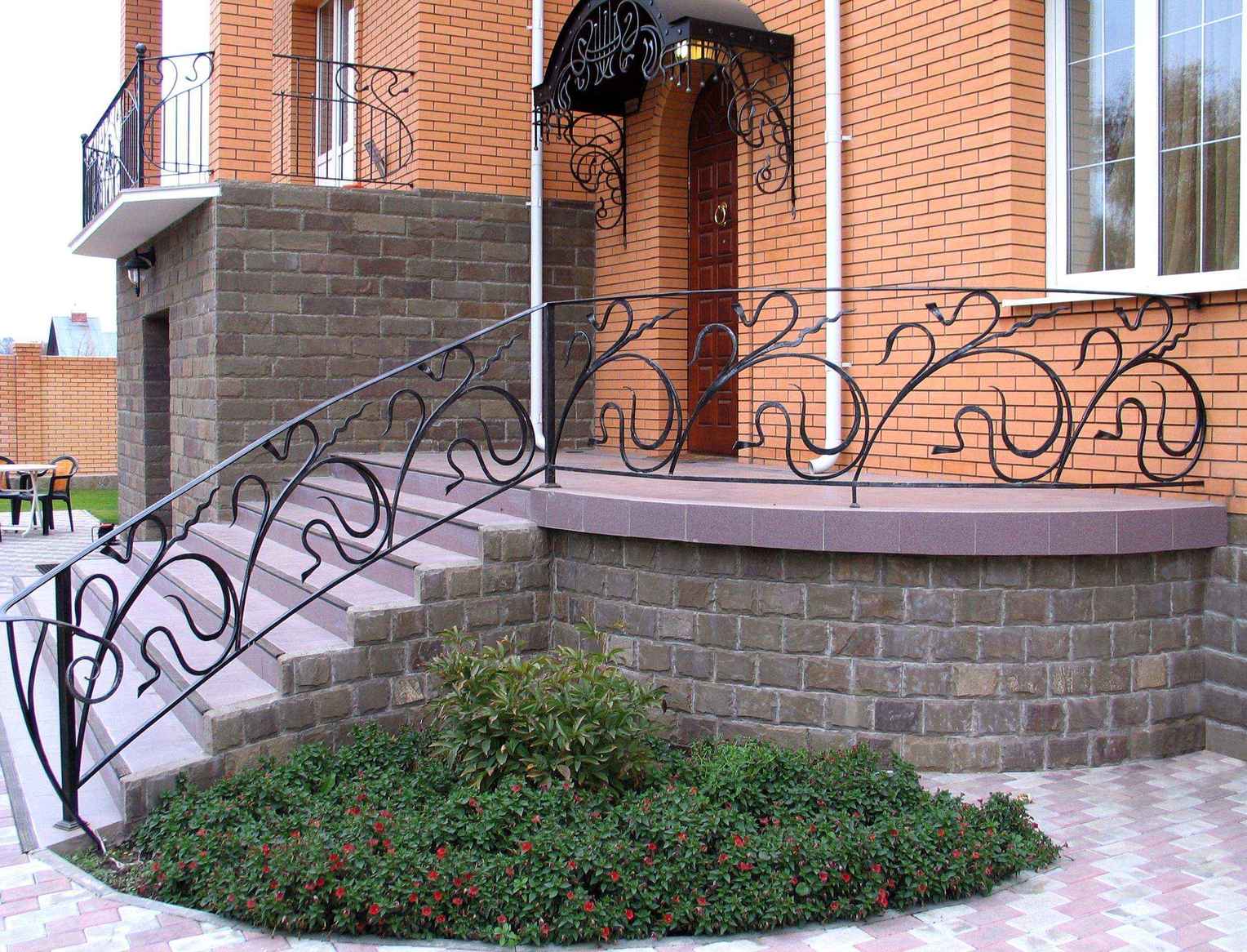 Красивое крыльцо кирпичного дома. Фото конструкции с полукруглыми ступенями