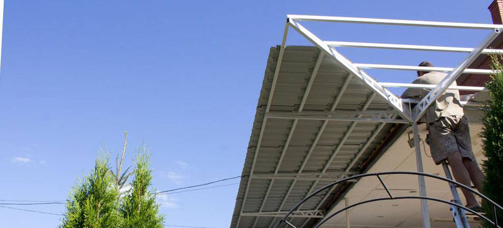 Монтаж листов осуществляется через специальный разъемный профиль. Рассмотрим, как выглядит процесс установки поликарбонатного полотна на конструкцию из металла. Процесс строительства состоит из нескольких этапов, которые выполняются в такой последовательности: