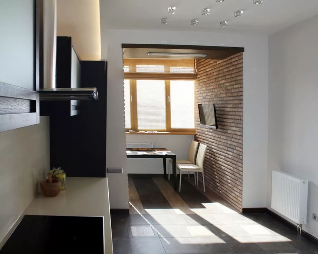 Можно обустроить интерьер в оригинальном стиле при объединении кухни и балкона. Однако для оптимального решения данной задачи потребуется обязательно учесть площадь помещения.