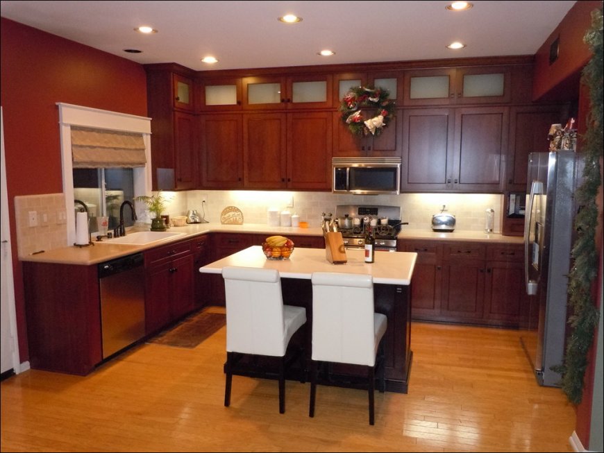 Еще при планировании помещения стоит учитывать, что такая кухня должна быть светлой и просторной, и не создавать обстановку нагромождения мебели и дефицита места.