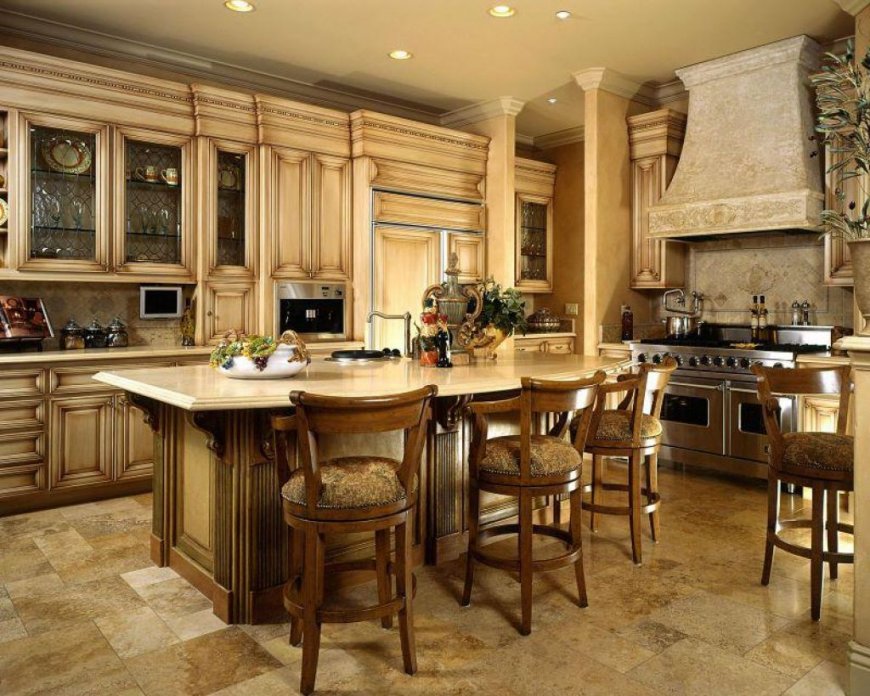 Кухонные гарнитуры в итальянском интерьере довольно массивные, но не грубые – состоят из двух рядов шкафов с классической формой фасадов, декорированными филенками, резьбой и фигурной фурнитурой. Очень часто кухни укомплектовываются изящным центральным островом.