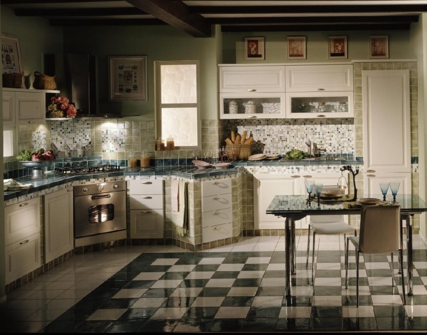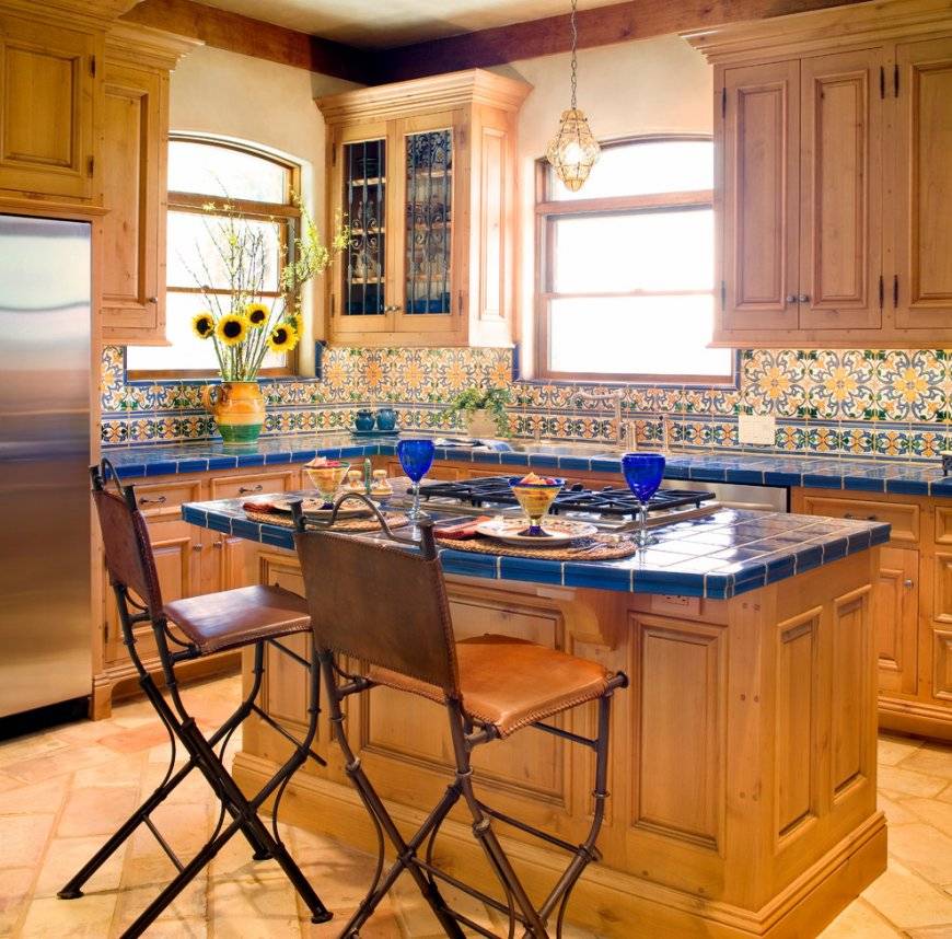 Кухня в средиземноморском стиле с элементами мозаики и штукатурки