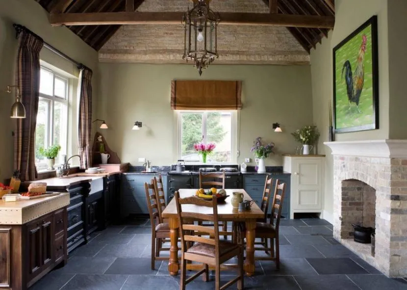 Трудно представить сельский дом без деревянного пола. Но древесные напольные покрытия не очень функциональны на современной кухне. Уместно будет использовать: