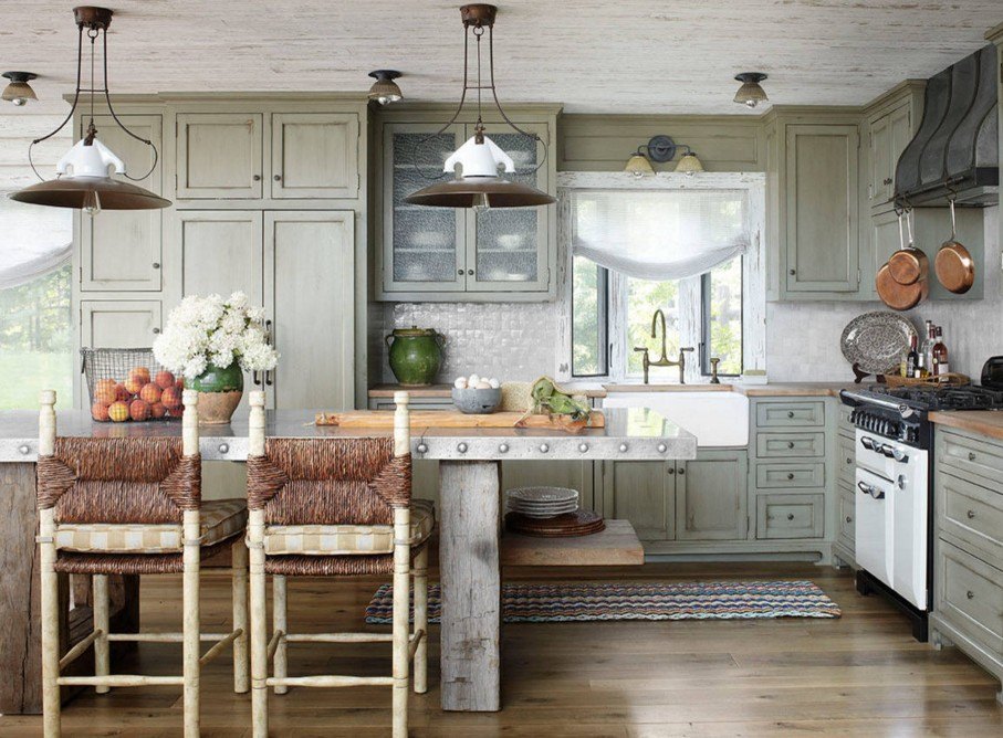 - оформление в светлых тонах. Отличительной чертой стиля считается применение светлых оттенков как для отделки, так и для изготовления кухонных фасадов и элементов мебели. Некоторые предметы специально состаривают, чтобы создать эффект потертости и выгоревшей на солнце поверхности;