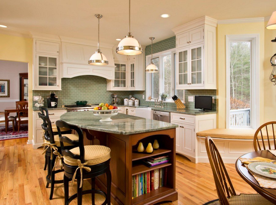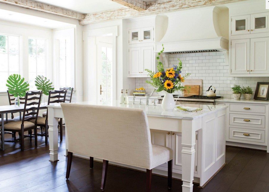 Этот стиль одинаково хорошо подходит для оформления как небольших кухонь в квартирах, так и просторных помещений загородных домов. Поскольку он предполагает использование светлых тонов, с его помощью можно визуально расширить комнату.