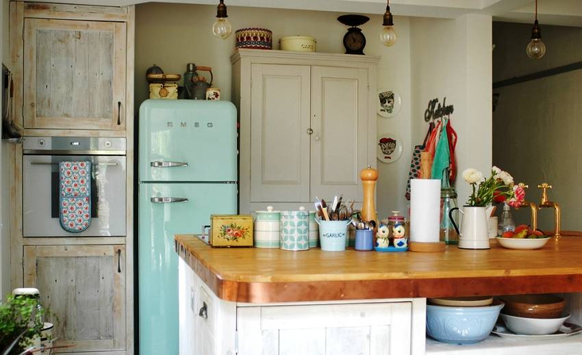 Не стоит выбирать современную бытовую технику под этот стиль. Печь холодильник и другие «блага цивилизации» должны не выбиваться из общего настроения дизайна.