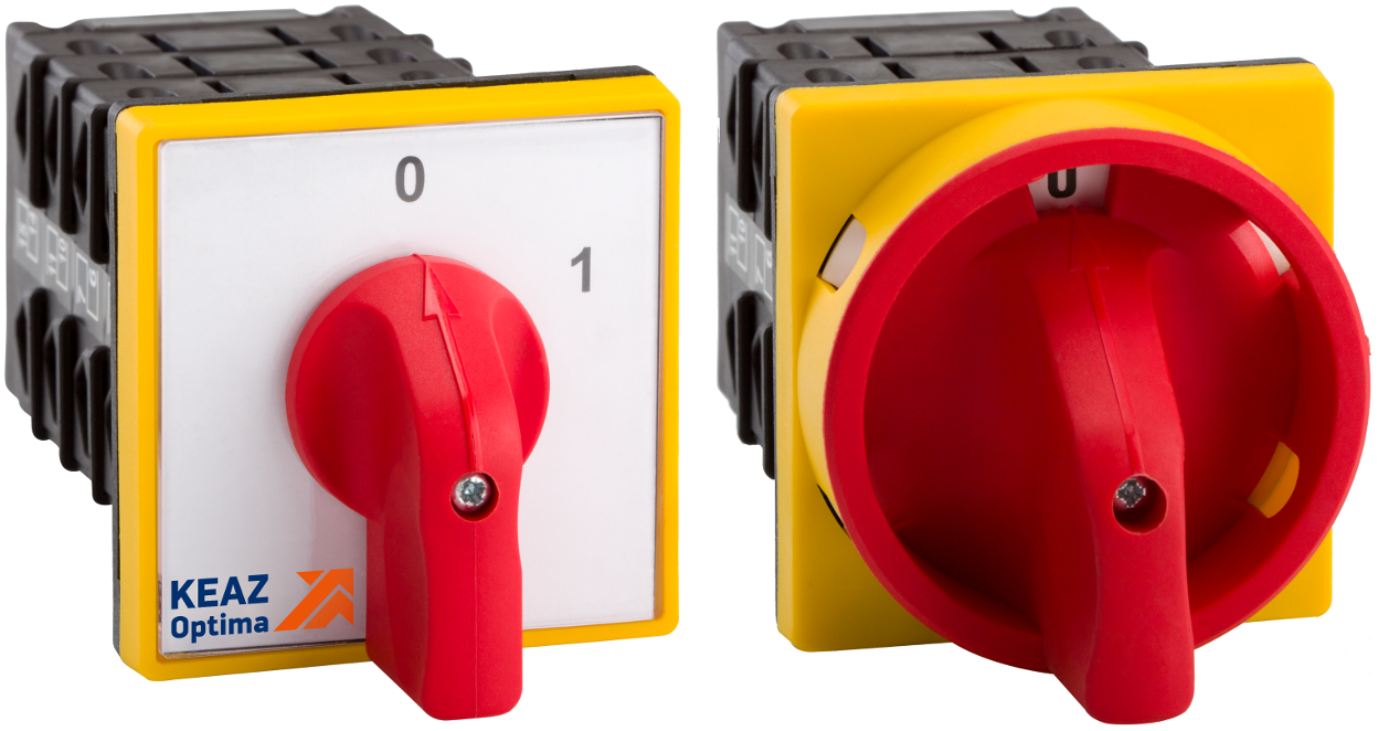 Также находят применение кулачковые переключатели с желтой фронтальной панелью и красной рукояткой в щитах аварийного управления.