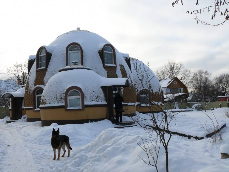 - купольный дом способен выдержать большие снеговые нагрузки, к тому же, из-за своей формы, снег может задерживаться лишь в верхней части купола.