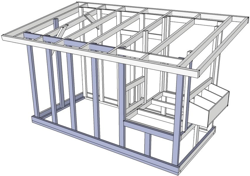 Каркасная конструкция является оптимальной для птичника, так как ее возведение отличается высокой скоростью, а также простотой