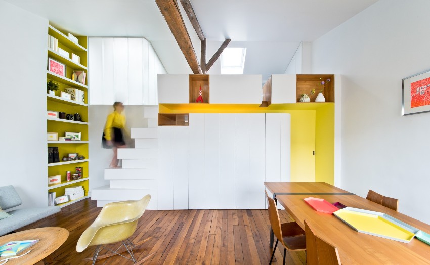 При оформлении современных квартир-студий не обойтись без мобильной мебели, которая может компактно складываться, когда в ней нет надобности, и раскладываться, превращаясь в комфортабельное уютное место. Чтобы удовлетворить все желания, придется некоторые элементы мебели изготовить под заказ. Но такое капиталовложение не останется незамеченным, а придаст индивидуальность и уникальность вашему помещению.