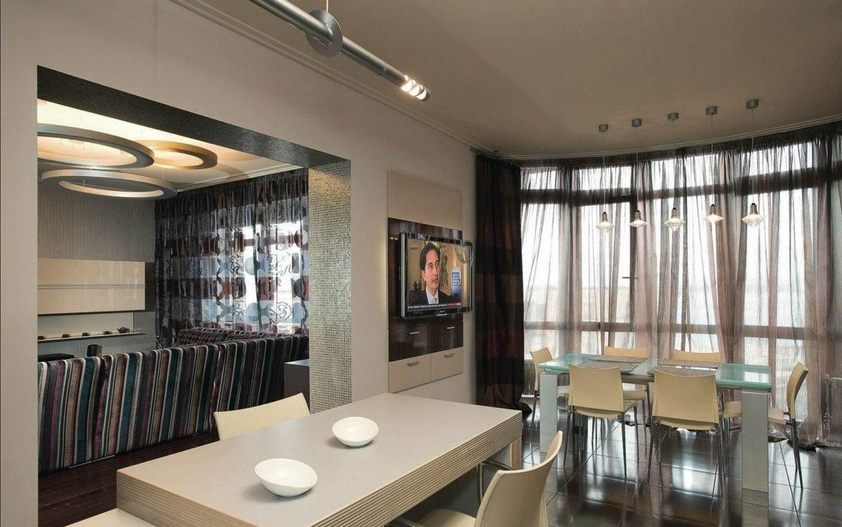 Диван может служить для отдыха днем, а ночью раскладываться в кровать. Нередко на такой мебели имеются ящики и полки для хранения вещей. В столовой лучше использовать гарнитур, который имеет подвесной шкаф и ящики для хранения. Остальную технику следует спрятать в дополнительных нишах или купить встроенные модели. Если на этой зоне сделан акцент, стоит приобрести стол с круглыми краями – он сэкономит пространство в квартире. Гардеробные и встроенные шкафы могут служить перегородкой в спальной зоне.