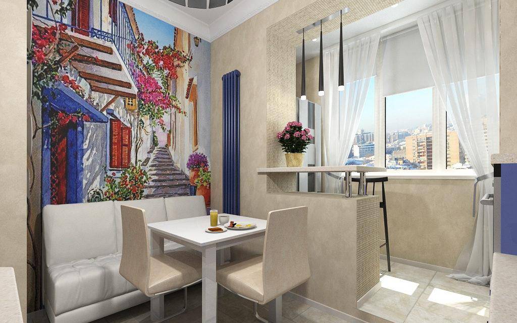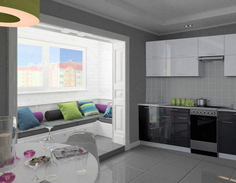 При объединении лоджии с жилым помещением появляется дополнительное пространство, на котором располагают обеденную или гостевую зоны.