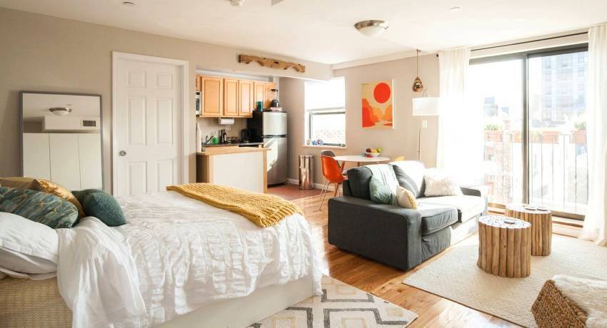 Квартира-студия: планировка, интерьер и фото объединенных комнат