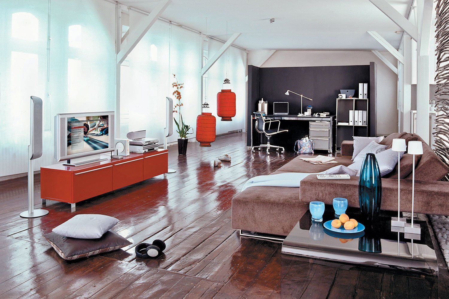 Удобнее располагать телевизор так, чтобы можно было смотреть из всех зон студии
