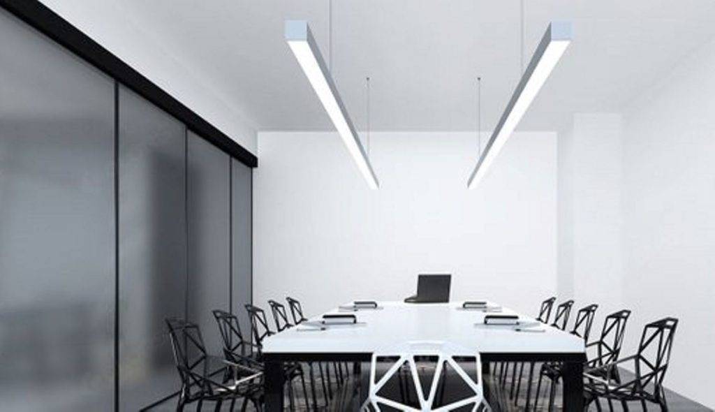 - Возможность создания бестеневого освещения. В отличие от точечных приборов и даже люстр, создающих световое пятно, линейные светильники позволяют качественно и равномерно осветить все помещение.