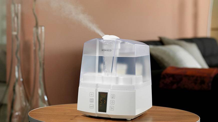Ультразвуковой увлажнитель разбивает воду на мельчайшие частицы при помощи вибрирующей на частоте ультразвука мембраны — отсюда и его название. Частицы смешиваются с воздухом, тем самым повышая его относительную влажность. Это самые популярные и тихие приборы, но воду в них нужно заливать очищенную, а то и дистиллированную, чтобы избежать налета на мебели. А еще, если в доме есть аллергики, устройство придется чуть ли не ежедневно мыть изнутри.