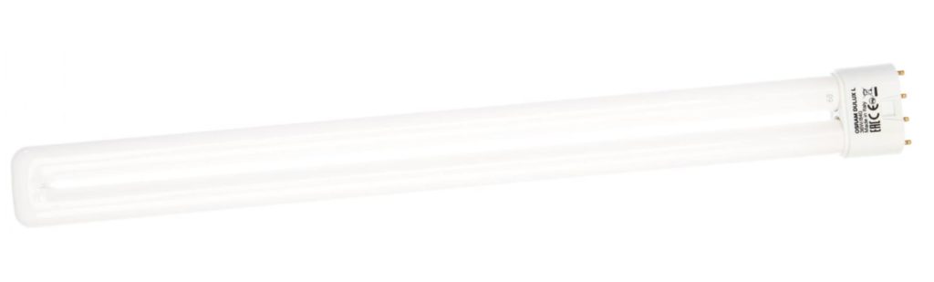 Это компактное приспособление имеет трубчатую форму и колбу типа L. Заявленная производителем мощность – 80 Вт при световом потоке – 6500 Лм. Источает теплый белый свет. Отличное решение как для жилых помещений, так и офисных. Габариты компактные и составляют 565х17,5 мм. Вес – 122 г. Во избежание ошибки при выборе следует отметить наличие матового покрытия. Заявленный эксплуатационный ресурс – 20 тыс.ч., что считается отличным показателем.