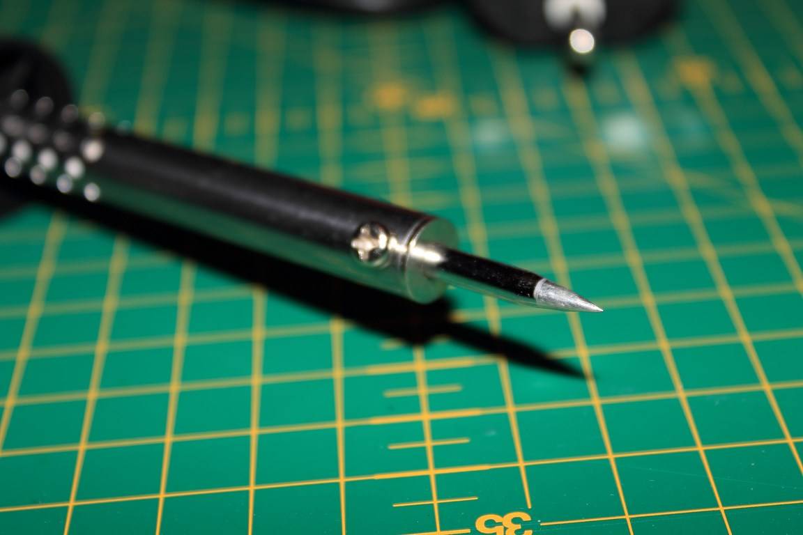 - Подключите паяльник к сети и подождите, пока он нагреется. Кстати, перед лужением нужно очистить жало паяльника от мусора и старого припоя. Для этого рекомендуем использовать напильник.