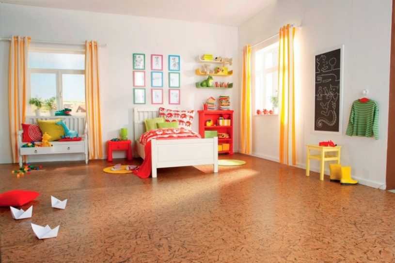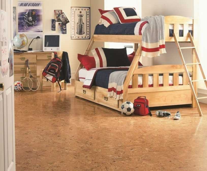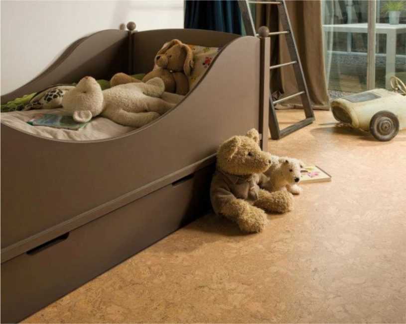 Родители, которые выбирают пробковый пол в детской, могут быть совершенно спокойны. Напольное покрытие обеспечит комфорт, тепло и обезопасит от травм даже подвижных, активных детей.