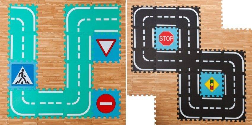 Для детей школьного возраста можно подобрать мягкое покрытие с нанесенными дорожными знаками и разметкой